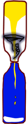 When the water is not rotating, surface tension creates a skin-like layer of water across the small hole in the center of the lids. If the top bottle is almost full, the water can push out a bulge in this surface to form a bulbous drop, which then drips into the lower bottle. As water drops into the lower bottle, the pressure in the lower bottle builds until air bubbles are forced into the upper bottle. The pressure that the water exerts on the surface in the connector decreases as the water level in the upper bottle drops. When the water level and pressure drop low enough, the water surface can hold back the water and stop the flow completely. If you spin the bottles around a few times, the water in the upper bottle starts rotating. As the water drains into the lower bottle, a vortex forms. The water is pulled down and forced toward the drain-hole in the center by gravity If we ignore the small friction forces, the angular momentum of the water stays the same as it moves inward. This means that the speed of the water around the center increases as it approaches the center of the bottle. (This is the same reason that the speed of rotating ice skaters increases when they pull in their arms.) To make water move in a circle, forces called centripetal forces must act on the water. These "center pulling" forces are provided by a combination of air pressure, water pressure, and gravity. You can tell where the centripetal forces are greater by looking at the slope of the water. Where the water is steeper, such as at the bottom of the vortex, the centripetal force on the water is greater. Water moving with higher speeds and in smaller radius curves requires larger forces. The water at the bottom of the vortex is doing just this, and so the wall of the vortex is steepest at the bottom. (Think about race cars: race tracks have steeper banks on high-speed, sharp corners to hold the cars in their circular paths around the track.) The hole in the vortex allows air from the lower bottle to flow easily into the upper bottle. This enables the upper bottle to drain smoothly and completely.